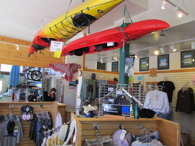 As you turn left into the village off of Highway 4, almost immediately on you’re left, you’ll see the Bear Valley Cross Country Ski and Adventure Company. In addition to the gas station you can see outside, the store offers a nice selection of snacks and beverages as well as seasonally appropriate gear and clothing. In the summer you can rent or buy bicycles (road and mountain) and kayaks. They also offer a variety of gear and clothing for hiking, paddling, and cycling.